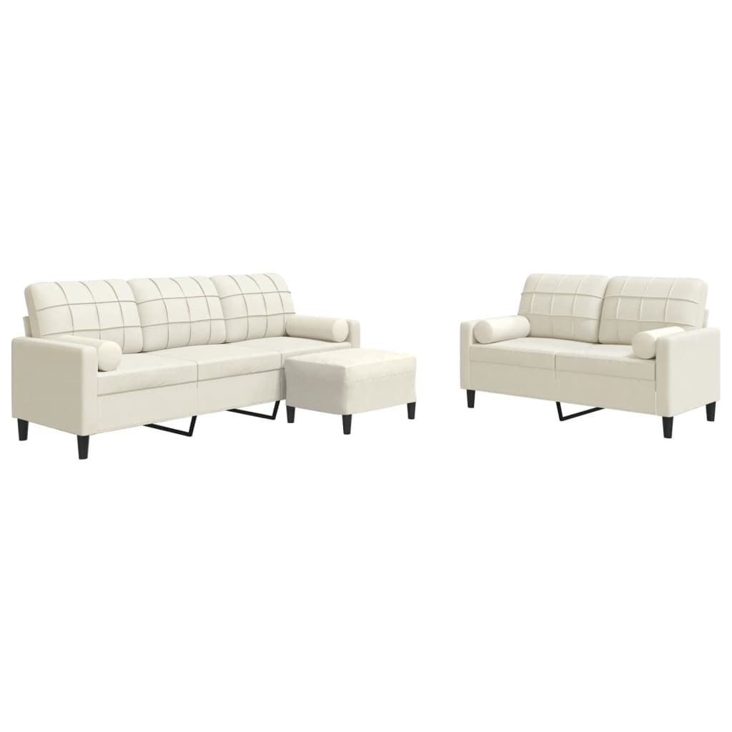 3-tlg. Sofagarnitur mit Kissen und Nackenrollen Creme Samt