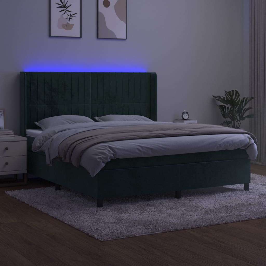 Boxspringbett mit Matratze & LED Dunkelgrün 160x200 cm Samt