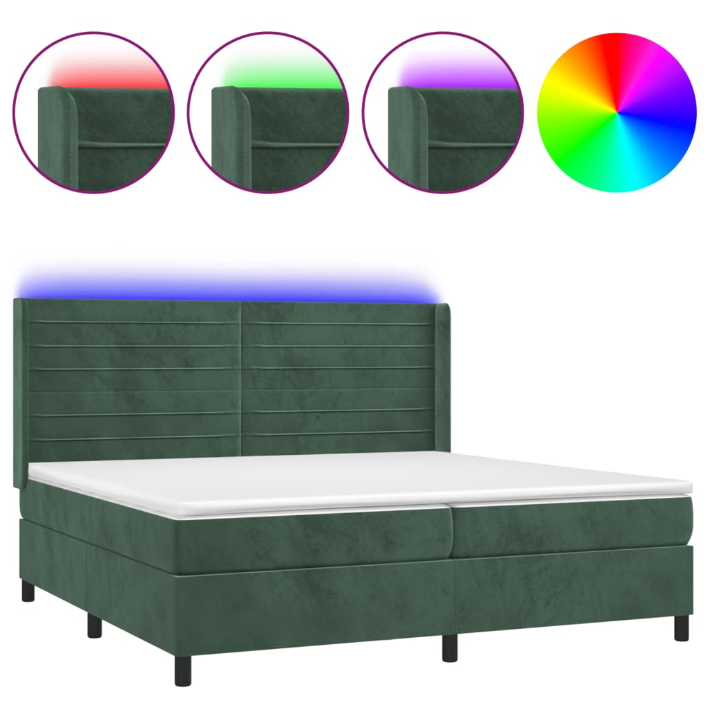 Boxspringbett mit Matratze & LED Dunkelgrün 200x200 cm Samt