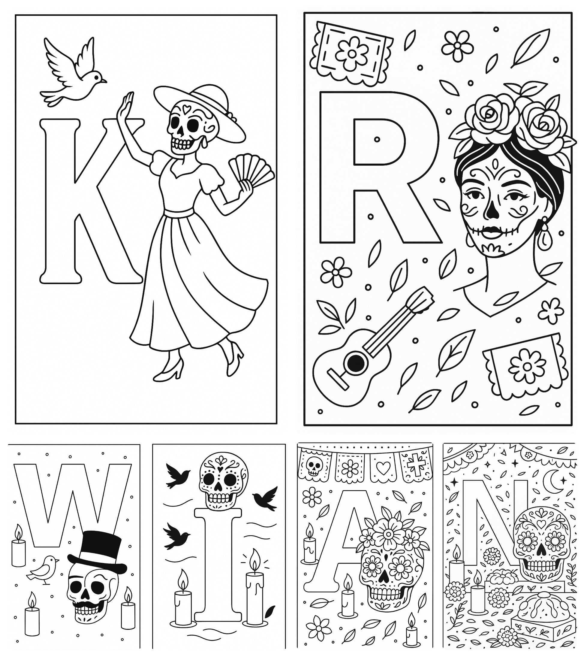 Feiere den Día de los Muertos mit diesen einzigartigen Alphabet-Malvorlagen A–Z!