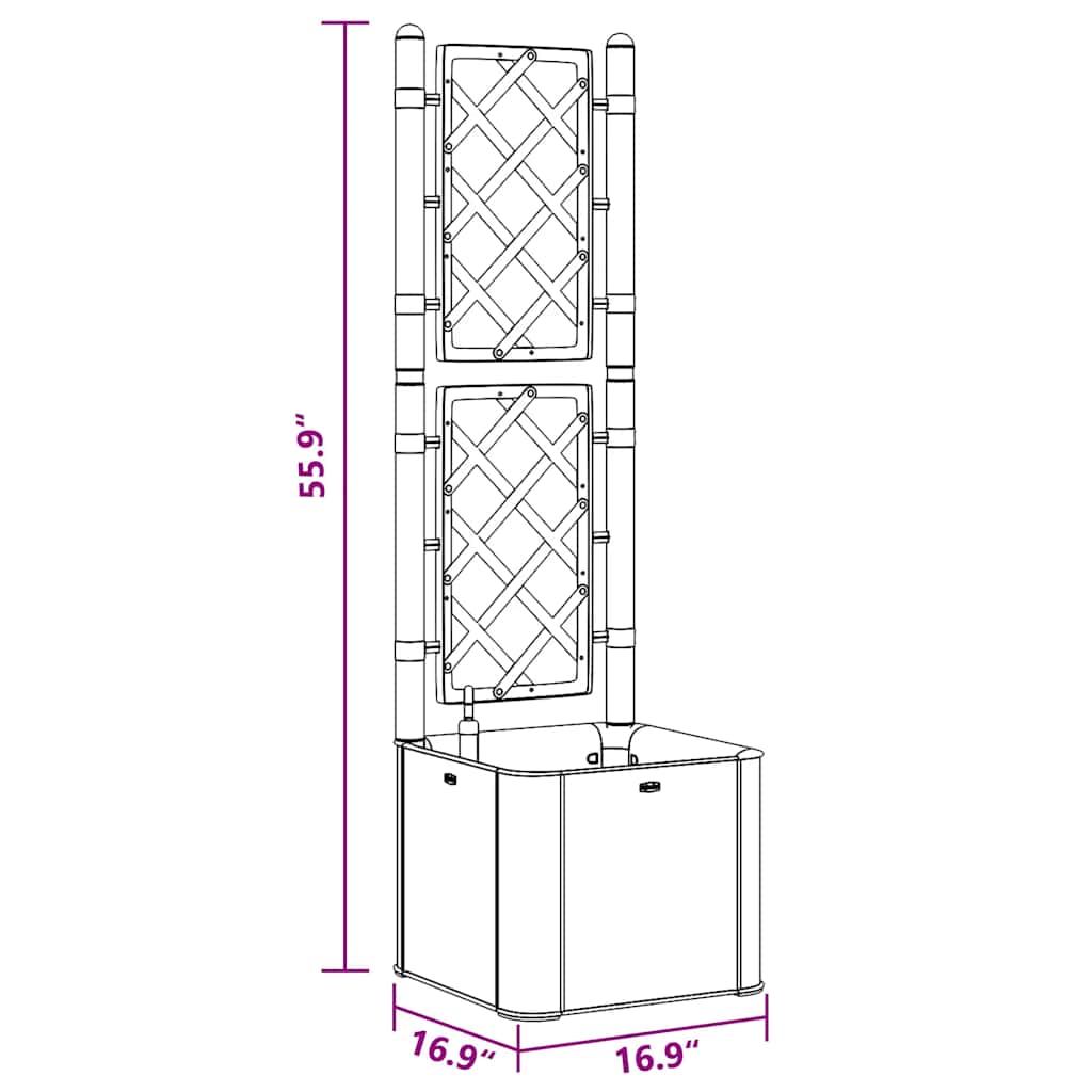 Schaffen Sie einen schönen Hingucker mit diesem eleganten, funktionalen und einzigartigen selbstbewässernden Hochbeet! Dieser Spalier-Pflanzkübel hat einen großen Blumenkasten, der eine große Anzahl grüner Pflanzen und Blumen aufnehmen kann. Das eingebaute Spalier bietet eine hervorragende Stütze für Kletterpflanzen wie Kräuter, Tomaten, Bohnen usw. Es besteht aus robustem UV-, wetter- und frostbeständigem Kunststoff und ist für den Innen- und Außenbereich geeignet. Das Design ähnelt einer täuschend realen Rattanstruktur. Das Material ist waschbar und leicht zu reinigen. Darüber hinaus kann diese Box Pflanzen automatisch gießen, indem sie Feuchtigkeit aus ihrem 35-l-Wasserreservoir ableitet, und verfügt über Wasserüberlauflöcher, um ein Überwässern zu verhindern. Die Füllstandsanzeige ist enthalten.