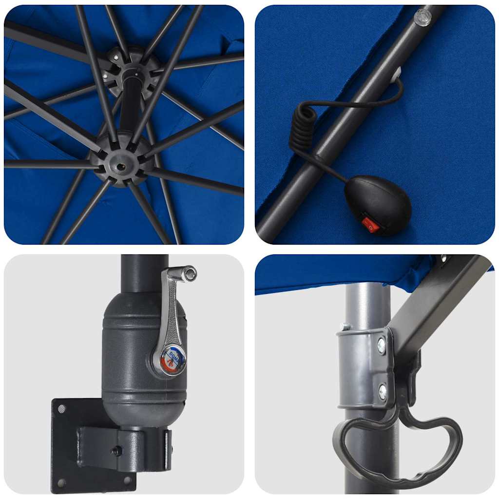 Dieser Garten-Sonnenschirm kombiniert Funktionalität mit modernem Flair, damit du den Sommer draußen genießen kannst, während du schattig und entspannt bleibst. Das glatte Polyesterdach ist wasserabweisend und hält dich bei leichtem Regen trocken, während es deinem Garten oder deiner Terrasse einen tollen Look verleiht. Er ist perfekt für faule Nachmittage oder gemütliche Abende im Freien, und mit den eingebauten LED-Lichtern siehst du nicht nur gut aus, sondern kannst auch deine Zeit draußen von Tag bis Nacht genießen. LED-Beleuchtung: Der Schirm hat versteckte LED-Lichter, perfekt für eine gemütliche Atmosphäre beim Chillout am Abend. Die sind solar- oder batteriebetrieben – keine nervigen Kabel! Verstellbarer Mechanismus: Mit der Handkurbel lässt sich der Schirm leicht öffnen und schließen, ideal, um im Schatten zu sitzen, wann immer du willst. Die Kippfunktion sorgt dafür, dass das Dach genau richtig eingestellt ist, so bleibst du bequem, egal wie hell es wird. Modernes Design: Dieser Sonnenschirm hat ein cooles, modernes Design mit klaren Linien, die den Look jedes Außenbereichs aufpeppen. Er sieht nicht nur gut aus, sondern passt auch super zu fast allen Outdoor-Umgebungen. Wasserabweisendes Material: Der Sonnenschirm aus wasserabweisendem Polyester bietet top Schatten und Schutz auch bei leichtem Regen. So kannst du draußen entspannen, ohne dir über plötzliches Wetter Sorgen zu machen. Wartungsarm: Es ist ganz einfach, ihn gut zu halten – leg einfach eine schützende Abdeckung drüber, wenn du ihn nicht benutzt. Ab und zu ein Sprühen mit wasserfestem Mittel sorgt dafür, dass er frisch aussieht und lange hält.