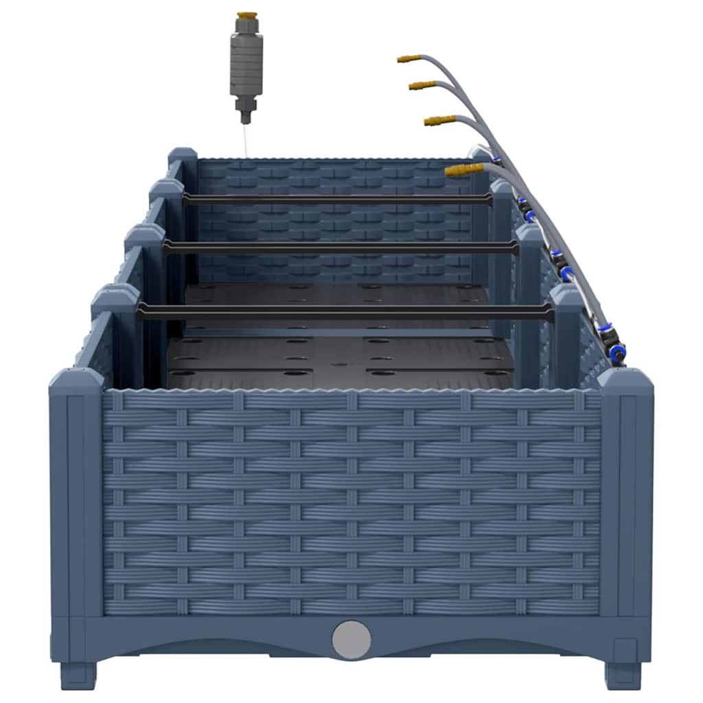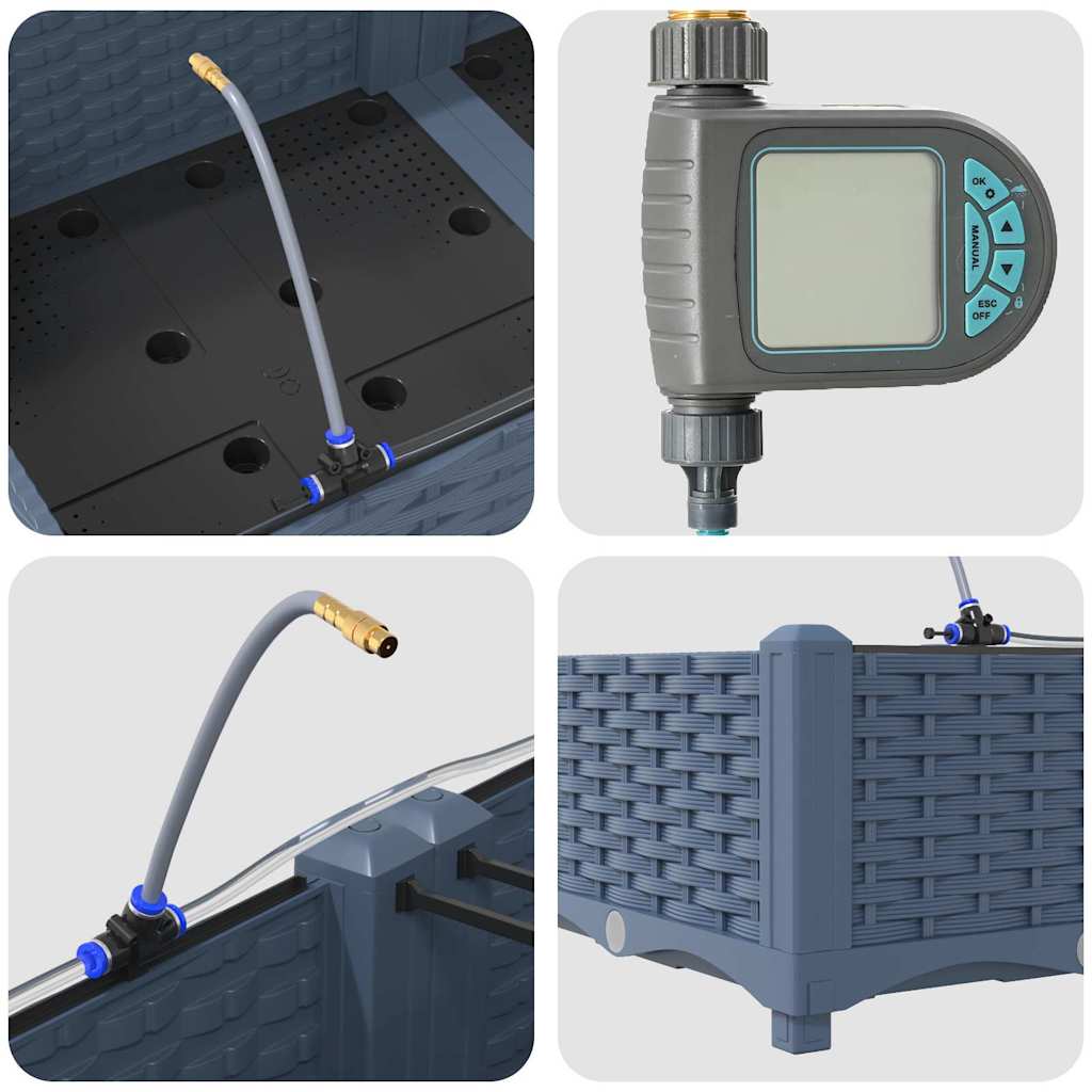 Dieser Gartenpflanzer mit Bewässerung ist eine moderne Lösung, die für Outdoor-Enthusiasten entwickelt wurde. Seine schlanke rechteckige Form, kombiniert mit einem strukturierten Geflechtmuster, verleiht deinem Garten oder Terrassenbereich einen zeitgenössischen Touch. Ideal für das Pflanzen einer Vielzahl von Flora, bietet dieser Pflanzer eine solide, ästhetisch ansprechende Grundlage für deine gärtnerischen Ambitionen. Er fügt sich nahtlos in jede Garten-Dekoration ein und bietet eine funktionale, aber stilvolle Option für Hobbygärtner. Der Pflanzer ist perfekt für alle, die ihren Außenbereich mit üppigem Grün bereichern wollen, unterstützt durch ein innovatives Bewässerungssystem, das ein gesundes Pflanzenwachstum fördert. Sein erhöhtes Design verleiht eine anspruchsvolle Note und sorgt gleichzeitig für praktische Verwendung, was dieses Stück zu einer unverzichtbaren Ergänzung für Gartenliebhaber macht. Materialkonstruktion: Der Gartenpflanzer besteht aus UV-beständigem Stahl, der Haltbarkeit und Widerstandsfähigkeit gegen Wetterveränderungen gewährleistet. Diese Materialwahl bietet robusten Schutz, der starkem Sonnenlichteinfluss und saisonalen Veränderungen angemessen widersteht, sodass deine Pflanzen das ganze Jahr über ohne Kompromisse beim strukturellen Integrität gedeihen. Eingebautes Bewässerungssystem: Ausgestattet mit einem fortschrittlichen Bewässerungssystem, nimmt dieser Gartenpflanzer das Rätselraten beim Gießen. Durch das nutzen von eingebauten Kanälen verteilt er Wasser effizient direkt zu den Pflanzenwurzeln, sodass diese ausreichende Feuchtigkeit erhalten, während der Wasserverbrauch reduziert wird und gesünderes Wachstum gefördert wird. Modernes Design: Mit einem schicken Geflechtmuster zeigt dieser Pflanzer elegante Einfachheit, die mit der modernen Ästhetik übereinstimmt. Seine nicht reflektierende matte Oberfläche verleiht einen verfeinerten Touch, sodass er sich nahtlos in verschiedene Außenbereiche integriert, während er mit seinen klaren, unaufdringlichen Linien den zeitgenössischen Stil verkörpert. Vielseitige Nutzung: Ideal für den Außeneinsatz, dient dieser Pflanzer sowohl dekorativen als auch praktischen Zwecken. Sein geräumiges Inneres bietet Platz für eine Vielzahl von Pflanzenarten, von üppigen Farnen bis hin zu lebhaften Blumen, was ihn für saisonale Übergänge oder den ganzjährigen Gebrauch geeignet macht und ein optimales Pflanzerlebnis für Hobbyisten und erfahrene Gärtner bietet. Pflege & Wartung: Um sein makelloses Erscheinungsbild zu bewahren, stelle diesen Pflanzer an einen stabilen Ort und vermeide direkte Sonneneinstrahlung über längere Zeiträume. Reinige regelmäßig mit einem trockenen Tuch und achte darauf, dass die Verbindungen während der Montage gesichert sind, um Stabilität und ästhetischen Wert über die Zeit zu gewährleisten.