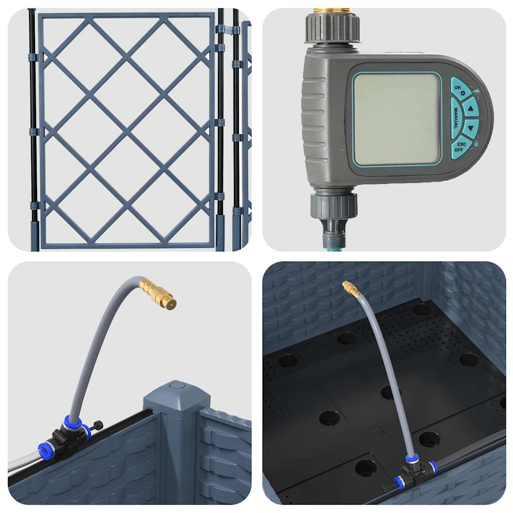Dieser Gartenpflanzer mit Bewässerung ist eine moderne Lösung, die für Outdoor-Enthusiasten entwickelt wurde. Seine schlanke rechteckige Form, kombiniert mit einem strukturierten Geflechtmuster, verleiht deinem Garten oder Terrassenbereich einen zeitgenössischen Touch. Ideal für das Pflanzen einer Vielzahl von Flora, bietet dieser Pflanzer eine solide, ästhetisch ansprechende Grundlage für deine gärtnerischen Ambitionen. Er fügt sich nahtlos in jede Garten-Dekoration ein und bietet eine funktionale, aber stilvolle Option für Hobbygärtner. Der Pflanzer ist perfekt für alle, die ihren Außenbereich mit üppigem Grün bereichern wollen, unterstützt durch ein innovatives Bewässerungssystem, das ein gesundes Pflanzenwachstum fördert. Sein erhöhtes Design verleiht eine anspruchsvolle Note und sorgt gleichzeitig für praktische Verwendung, was dieses Stück zu einer unverzichtbaren Ergänzung für Gartenliebhaber macht. Materialkonstruktion: Der Gartenpflanzer besteht aus UV-beständigem Stahl, der Haltbarkeit und Widerstandsfähigkeit gegen Wetterveränderungen gewährleistet. Diese Materialwahl bietet robusten Schutz, der starkem Sonnenlichteinfluss und saisonalen Veränderungen angemessen widersteht, sodass deine Pflanzen das ganze Jahr über ohne Kompromisse beim strukturellen Integrität gedeihen. Eingebautes Bewässerungssystem: Ausgestattet mit einem fortschrittlichen Bewässerungssystem, nimmt dieser Gartenpflanzer das Rätselraten beim Gießen. Durch das nutzen von eingebauten Kanälen verteilt er Wasser effizient direkt zu den Pflanzenwurzeln, sodass diese ausreichende Feuchtigkeit erhalten, während der Wasserverbrauch reduziert wird und gesünderes Wachstum gefördert wird. Modernes Design: Mit einem schicken Geflechtmuster zeigt dieser Pflanzer elegante Einfachheit, die mit der modernen Ästhetik übereinstimmt. Seine nicht reflektierende matte Oberfläche verleiht einen verfeinerten Touch, sodass er sich nahtlos in verschiedene Außenbereiche integriert, während er mit seinen klaren, unaufdringlichen Linien den zeitgenössischen Stil verkörpert. Vielseitige Nutzung: Ideal für den Außeneinsatz, dient dieser Pflanzer sowohl dekorativen als auch praktischen Zwecken. Sein geräumiges Inneres bietet Platz für eine Vielzahl von Pflanzenarten, von üppigen Farnen bis hin zu lebhaften Blumen, was ihn für saisonale Übergänge oder den ganzjährigen Gebrauch geeignet macht und ein optimales Pflanzerlebnis für Hobbyisten und erfahrene Gärtner bietet. Pflege & Wartung: Um sein makelloses Erscheinungsbild zu bewahren, stelle diesen Pflanzer an einen stabilen Ort und vermeide direkte Sonneneinstrahlung über längere Zeiträume. Reinige regelmäßig mit einem trockenen Tuch und achte darauf, dass die Verbindungen während der Montage gesichert sind, um Stabilität und ästhetischen Wert über die Zeit zu gewährleisten.