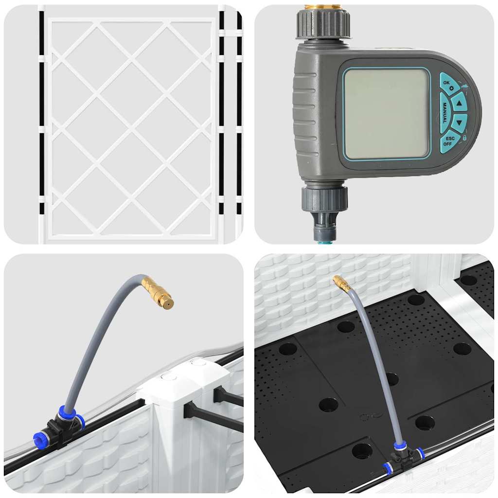 Dieser Gartenpflanzer mit Bewässerung ist eine moderne Lösung, die für Outdoor-Enthusiasten entwickelt wurde. Seine schlanke rechteckige Form, kombiniert mit einem strukturierten Geflechtmuster, verleiht deinem Garten oder Terrassenbereich einen zeitgenössischen Touch. Ideal für das Pflanzen einer Vielzahl von Flora, bietet dieser Pflanzer eine solide, ästhetisch ansprechende Grundlage für deine gärtnerischen Ambitionen. Er fügt sich nahtlos in jede Garten-Dekoration ein und bietet eine funktionale, aber stilvolle Option für Hobbygärtner. Der Pflanzer ist perfekt für alle, die ihren Außenbereich mit üppigem Grün bereichern wollen, unterstützt durch ein innovatives Bewässerungssystem, das ein gesundes Pflanzenwachstum fördert. Sein erhöhtes Design verleiht eine anspruchsvolle Note und sorgt gleichzeitig für praktische Verwendung, was dieses Stück zu einer unverzichtbaren Ergänzung für Gartenliebhaber macht. Materialkonstruktion: Der Gartenpflanzer besteht aus UV-beständigem Stahl, der Haltbarkeit und Widerstandsfähigkeit gegen Wetterveränderungen gewährleistet. Diese Materialwahl bietet robusten Schutz, der starkem Sonnenlichteinfluss und saisonalen Veränderungen angemessen widersteht, sodass deine Pflanzen das ganze Jahr über ohne Kompromisse beim strukturellen Integrität gedeihen. Eingebautes Bewässerungssystem: Ausgestattet mit einem fortschrittlichen Bewässerungssystem, nimmt dieser Gartenpflanzer das Rätselraten beim Gießen. Durch das nutzen von eingebauten Kanälen verteilt er Wasser effizient direkt zu den Pflanzenwurzeln, sodass diese ausreichende Feuchtigkeit erhalten, während der Wasserverbrauch reduziert wird und gesünderes Wachstum gefördert wird. Modernes Design: Mit einem schicken Geflechtmuster zeigt dieser Pflanzer elegante Einfachheit, die mit der modernen Ästhetik übereinstimmt. Seine nicht reflektierende matte Oberfläche verleiht einen verfeinerten Touch, sodass er sich nahtlos in verschiedene Außenbereiche integriert, während er mit seinen klaren, unaufdringlichen Linien den zeitgenössischen Stil verkörpert. Vielseitige Nutzung: Ideal für den Außeneinsatz, dient dieser Pflanzer sowohl dekorativen als auch praktischen Zwecken. Sein geräumiges Inneres bietet Platz für eine Vielzahl von Pflanzenarten, von üppigen Farnen bis hin zu lebhaften Blumen, was ihn für saisonale Übergänge oder den ganzjährigen Gebrauch geeignet macht und ein optimales Pflanzerlebnis für Hobbyisten und erfahrene Gärtner bietet. Pflege & Wartung: Um sein makelloses Erscheinungsbild zu bewahren, stelle diesen Pflanzer an einen stabilen Ort und vermeide direkte Sonneneinstrahlung über längere Zeiträume. Reinige regelmäßig mit einem trockenen Tuch und achte darauf, dass die Verbindungen während der Montage gesichert sind, um Stabilität und ästhetischen Wert über die Zeit zu gewährleisten.