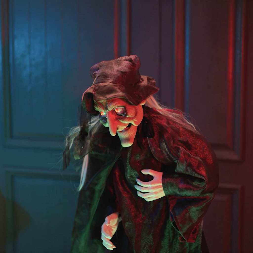 Die sprechende Halloweenhexe ist eine fesselnde saisonale Deko, die perfekt für Halloween-Fans ist. Mit einer Größe von 125 x 216 cm besteht diese Figur aus robustem Polyester, das ihren gotischen Charme ausmacht. Die gruselige lila Farbe macht sie zu einem Blickfang für jede Indoor-Halloween-Dekoration. Sie wurde für dramatische Effekte designt und ist ideal für Entertainment-Räume oder Wohnzimmer und bringt eine unheimliche Stimmung zu jeder Feier. Materialien: Hergestellt aus hochwertigem Polyester und Kunststoff, hat die sprechende Halloweenhexe ein langlebiges und auffälliges Design. Das Polyester sorgt für Flexibilität und Haltbarkeit, sodass sie den Anforderungen der saisonalen Nutzung standhält, während die ausgefallenen gotischen Details die Aufmerksamkeit aller auf sich ziehen. Im Lieferumfang enthalten: Das Paket enthält 1 sprechende Halloweenhexe mit batteriebetriebenen LED-Augen und beweglichen Teilen, die ein spannendes Dekorationsstück bieten. Sorgfältig verarbeitet, um nahtlos in dein gruseliges Setup zu integrieren, steigert jedes detailreiche Element den insgesamt unheimlichen Charme. Funktionen/Funktion/Design: Interaktivität steht im Mittelpunkt, mit Geräusch- und Bewegungsaktivierung. Wenn sich Leute im Bereich von 50 cm bewegen, wird sie lebendig mit gruseligen Geräuschen, blinkenden Augen und beweglichem Kiefer, was ein immersives Erlebnis schafft, das die gruselige Atmosphäre perfekt ergänzt. Empfohlene Verwendungen: Diese Hexe kann das Herzstück jeder Halloween-Dekoration sein, sei es im Wohnzimmer für Partys oder als eigenständiges Gruselhobby. Ihr anpassbares Design bedeutet, dass sie sowohl für dichte Dekos geeignet ist oder als alleinstehender Hingucker fungiert, um zu fesseln und zu unterhalten. Pflege & Wartung: Halte sie von Feuer fern, um Schäden zu vermeiden und die ausgefallene Qualität ihrer Details zu bewahren. Lagere sie in der Nebensaison ordentlich, sodass diese Halloween-Begleiterin für viele Jahre gruselige Freude bereit ist.