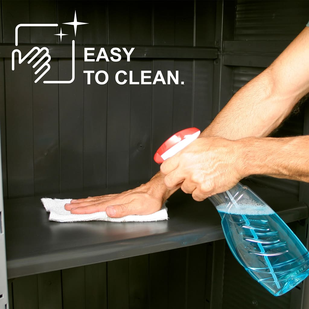 Mit diesem Schrank sorgen Sie für Ordnung in Ihrem Zuhause. Er ist eine ideale Wahl für den Einsatz zu Hause, im Büro, in der Garage und im Lagerraum. Dieser Aufbewahrungsschrank ist aus Kunststoff gefertigt und daher leicht zu reinigen. Der Schrank bietet reichlich Stauraum, um Ihre wichtigsten Gegenstände ordentlich und griffbereit aufzubewahren. Der Schrank weist ein kompaktes Design auf und nutzt daher begrenzten Platz optimal aus.