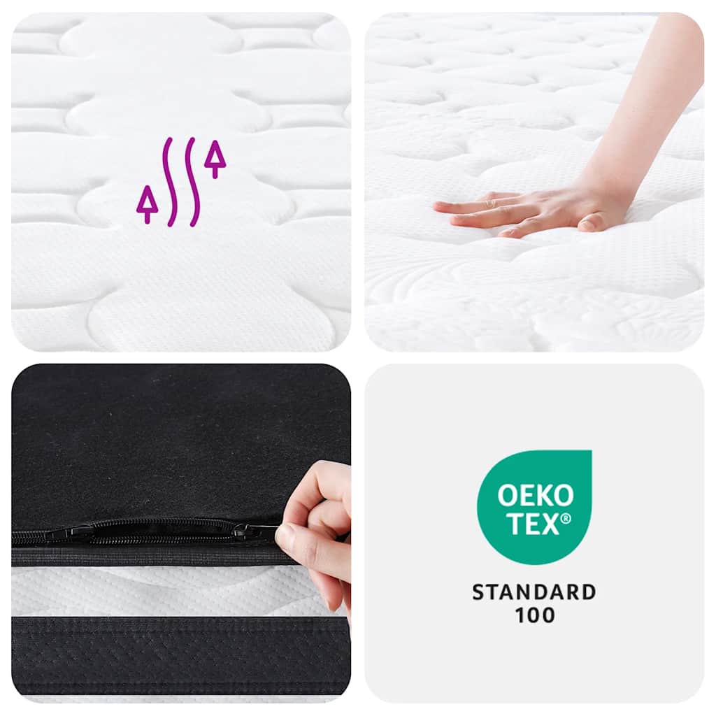 Diese Bonnell-Federkern-Matratze bietet dir ein angenehmes Gefühl und ein komfortables Schlaferlebnis. Haltbarkeit und Langlebigkeit: Der Stoff zeichnet sich durch einen schlichten und sauberen Look aus und ist gleichzeitig atmungsaktiv, hautfreundlich und langlebig. Ausgezeichnete Unterstützung: Das Bonnell-Federsystem besteht aus miteinander verbundenen Stahlspiralen in Sanduhr-Form, die fest und stabil sind, um besten Halt und Langlebigkeit zu bieten. Erhöhter Komfort: Die Federkernmatratze besteht aus mehreren Schichten, darunter eine Schaumstoffschicht, eine Isolierschicht und eine Federschicht. Diese Kombination bietet ein weiches bis mittleres Liegegefühl und einen hohen Liegekomfort in allen Schlafpositionen. Darüber hinaus absorbiert die Matratze effektiv Geräusche und Vibrationen, die durch das Hin- und Herdrehen verursacht werden, und sorgt so für einen ruhigen und ungestörten Schlaf. Einfache Pflege: Die Federkernmatratze ist mit einem langen Reißverschluss an der Unterseite versehen, sodass sich der Bezug zum Reinigen leicht abnehmen lässt. Gut zu wissen:Diese Matratze besteht aus zwei einzelnen Matratzenkernen, die zu einer einzigen, einheitlichen Matratze kombiniert werden.Der Bezug der Matratze ist bei bis zu 40 °C waschbar. Es ist zu beachten, dass er nicht häufig gewaschen werden sollte. Die Matratze ist komprimiert und aufgerollt in einem Karton verpackt, so dass du sie leicht bewegen und in deinem Zimmer aufstellen kannst.