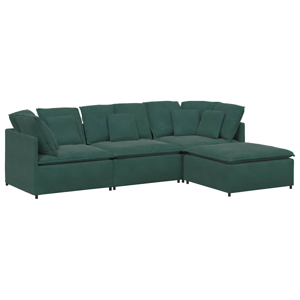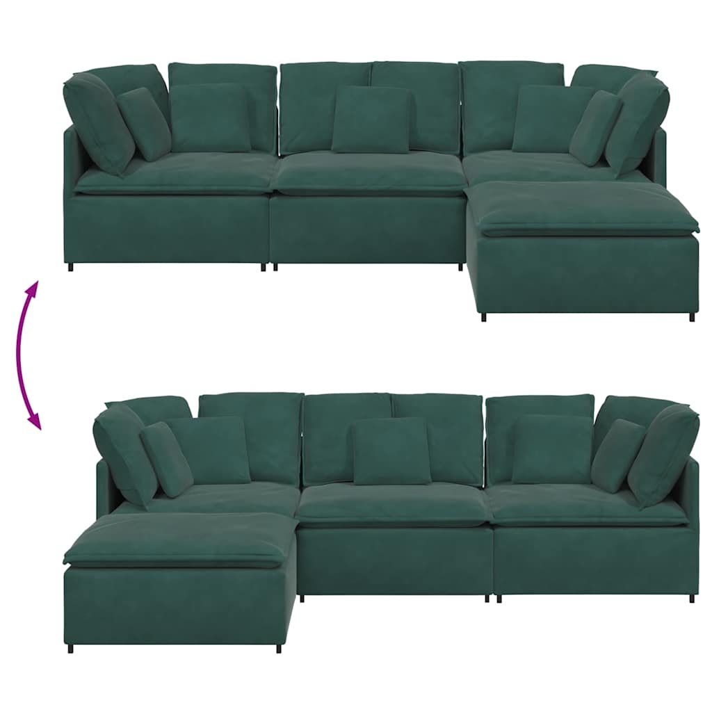 Modulares Sofa mit Fußhocker Kissen Samt Dunkelgrün
