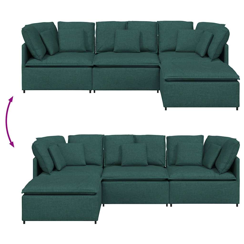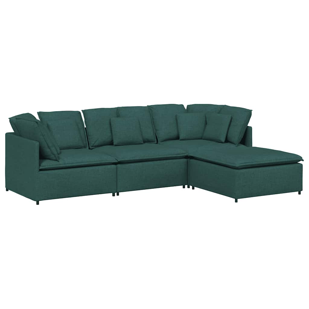 Modulares Sofa mit Fußhocker Kissen Stoff Dunkelgrün