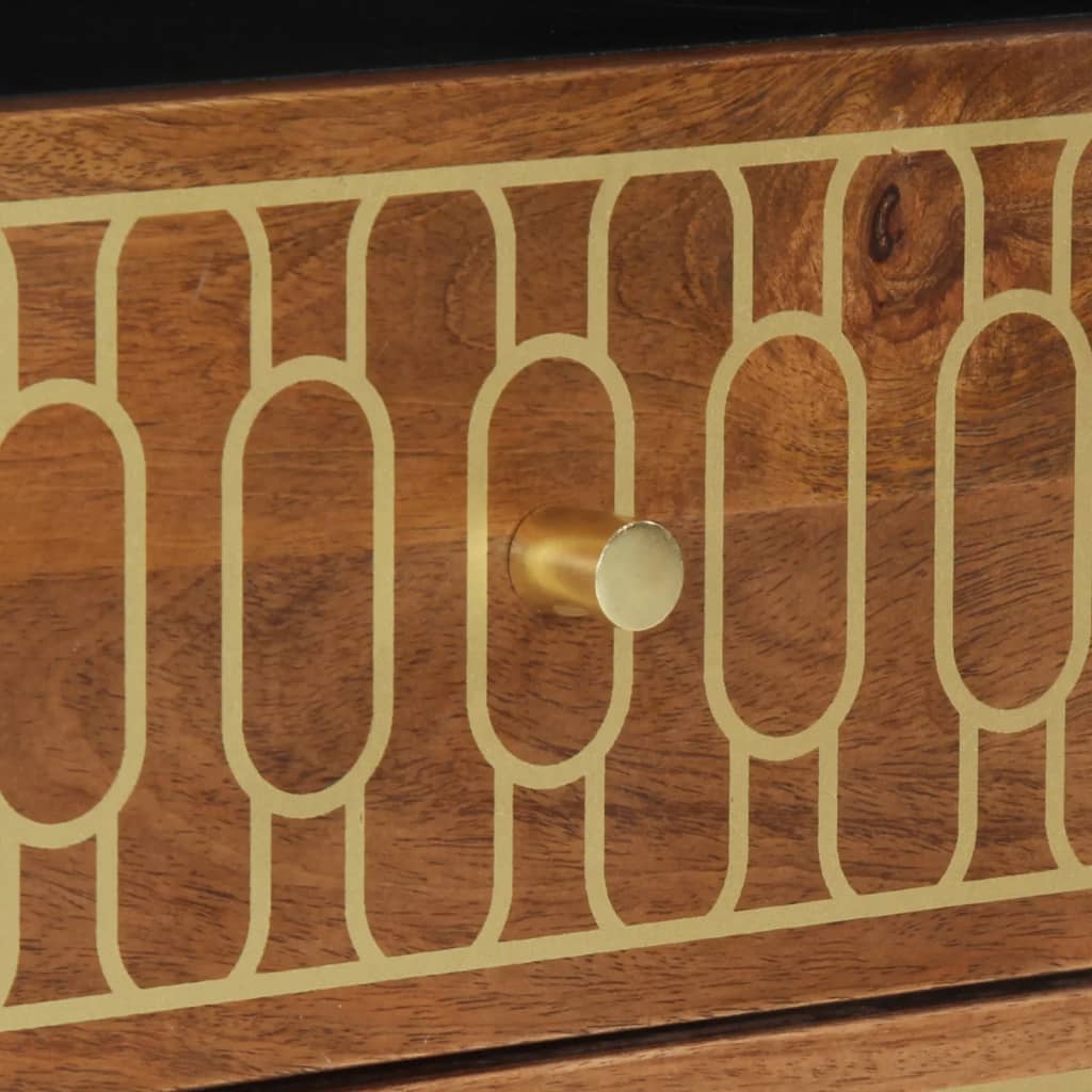 Dieser Nachttisch mit elegantem Design ist eine zeitlose Ergänzung deiner Inneneinrichtung. Massives Mangholz: Massives Mangoholz ist ein robustes, tropisches Hartholz, aus dem sich robuste Möbel herstellen lassen. Seine optisch ansprechende Holzmaserung macht jedes Möbelstück zu einem Unikat. Der Schrank ist aus massivem Mangoholz gefertigt und daher langlebig und stabil.Viel Stauraum: Der Nachttisch ist mit 2 Schubladen und 1 Fach ausgestattet, um verschiedene Sachen ordentlich und griffbereit aufzubewahren.Stabile Oberplatte: Die Oberplatte des Beistellschranks bietet den perfekten Platz, um Dekoartikel, Bilderrahmen und Topfpflanzen zur Schau zu stellen.Starke Beine: Die Eisenbeine tragen zur Robustheit und Stabilität der Nachtkommode bei.Retro-Stil: Mit einem handgeschnitzten Blumenmuster versehen, bringt dieser Nachttisch den Luxus des Retro-Stils in dein Interieur und wird überall ein echter Hingucker sein. Gut zu wissen:Jedes Stück ist ein Unikat, das in Farbe und Maserung variiert. Die Lieferung erfolgt in zufälliger Reihenfolge, wodurch die Exklusivität und Individualität deines Produkts gewährleistet wird. Achtung:Um ein Umkippen zu vermeiden, sollte dieses Produkt mit der mitgelieferten Wandhalterung gesichert werden.
