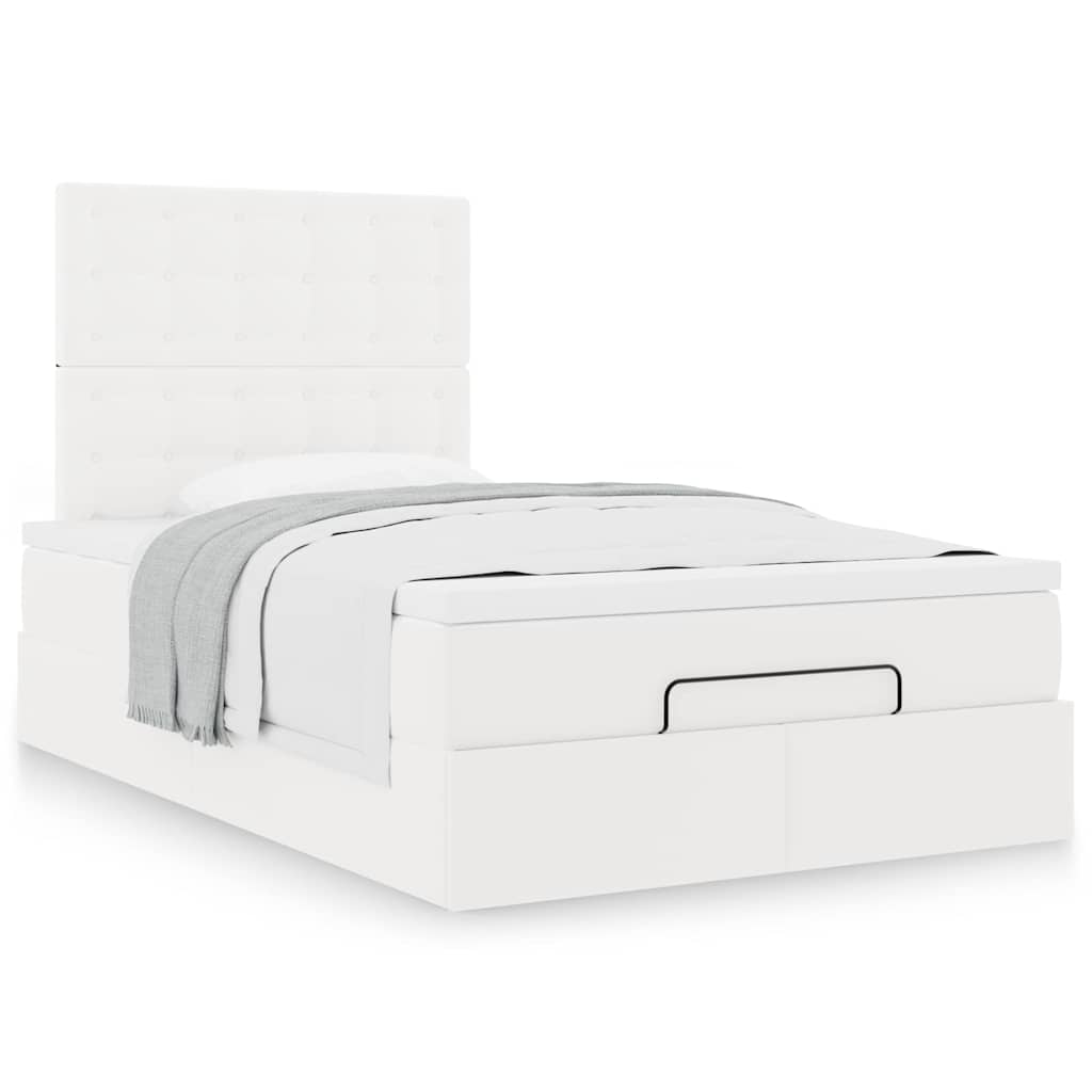 Ottoman-Bett mit Matratze Weiß 120x190 cm Kunstleder