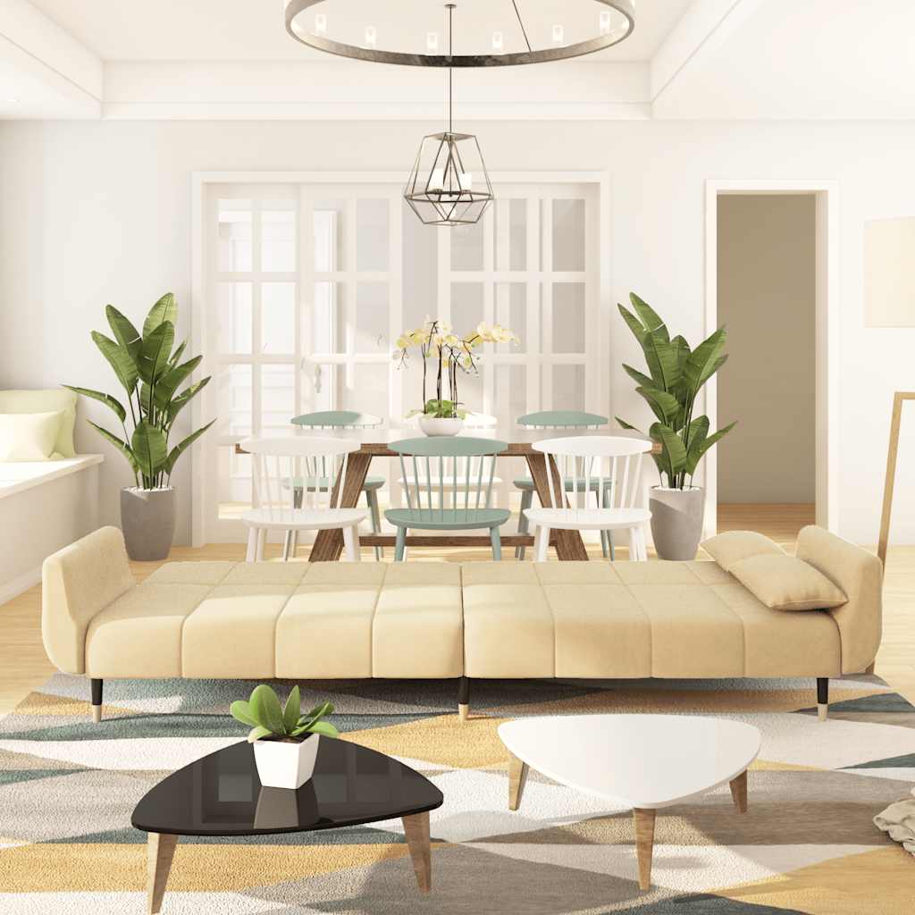 Schlafsofa 2-Sitzer mit 2 Kissen Creme Samt