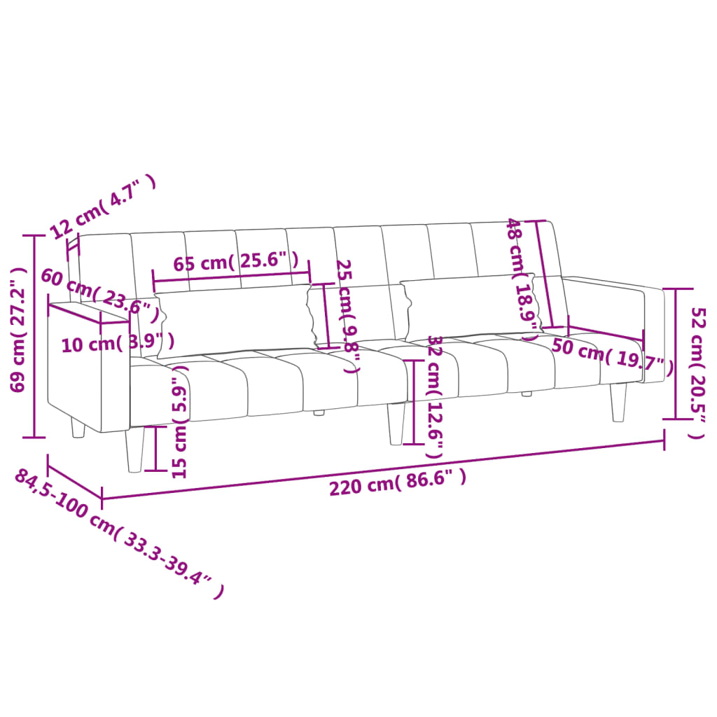 Schlafsofa 2-Sitzer mit 2 Kissen Dunkelgrau Stoff