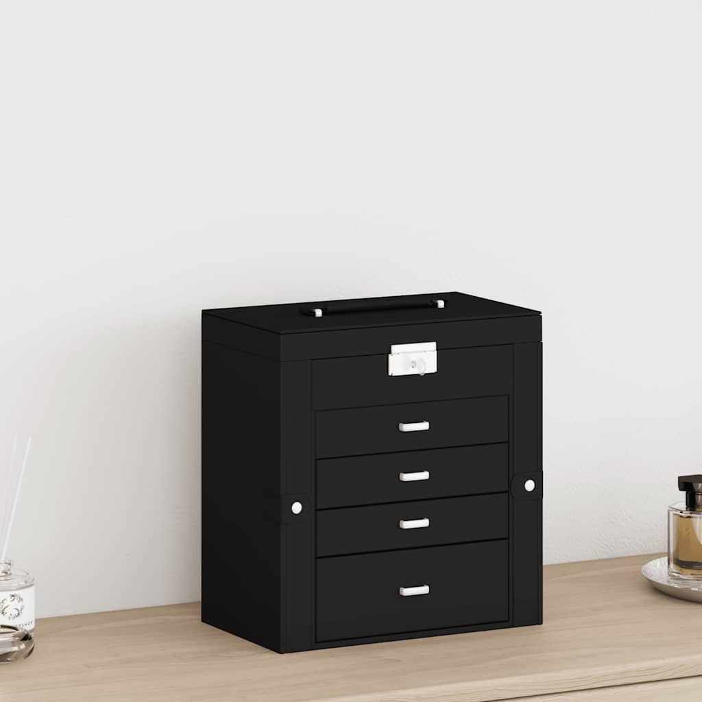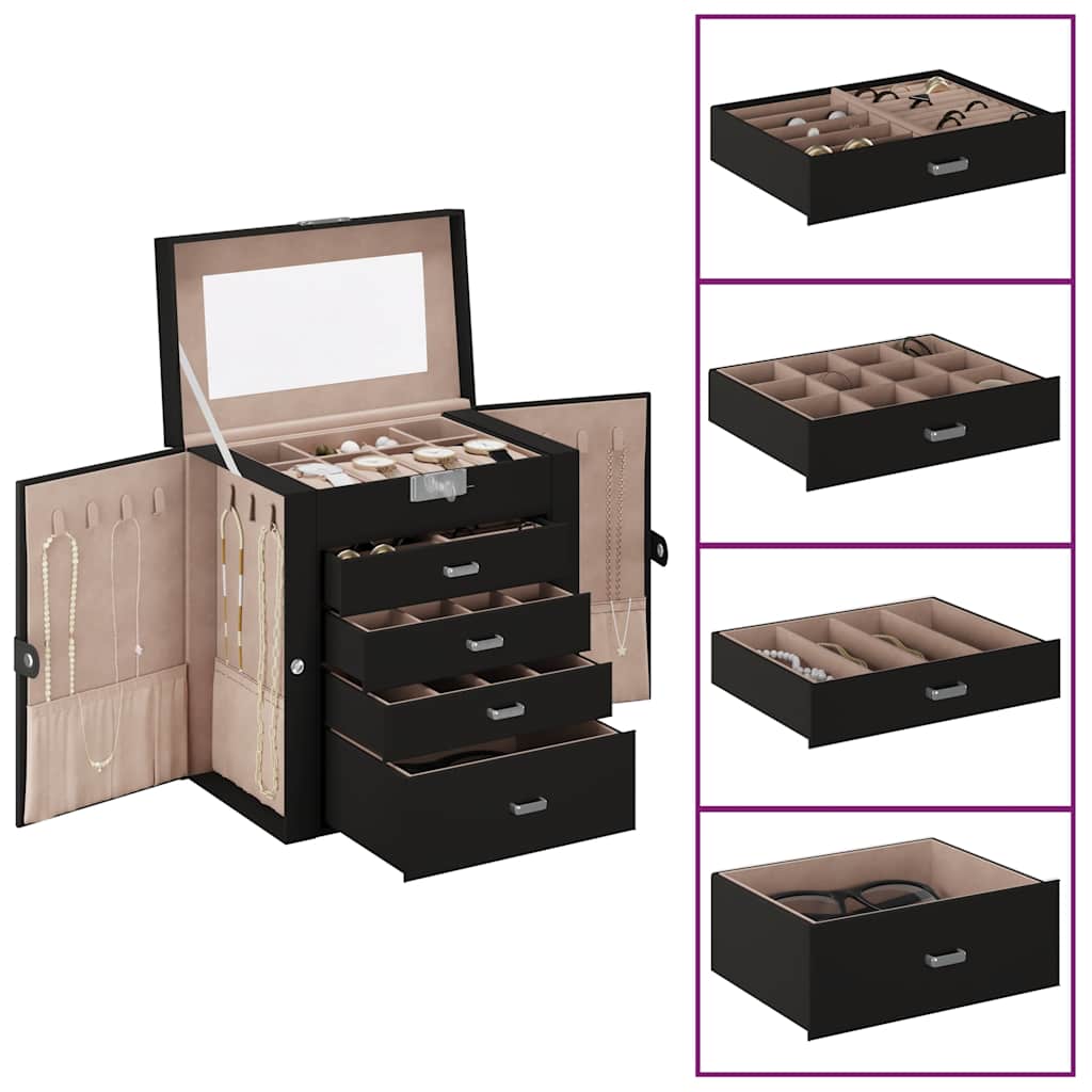 Schmuckkästchen 5-Schichten mit Spiegel Abschließbar Schwarz