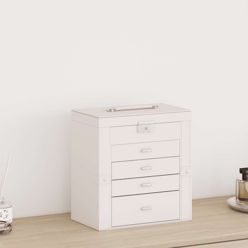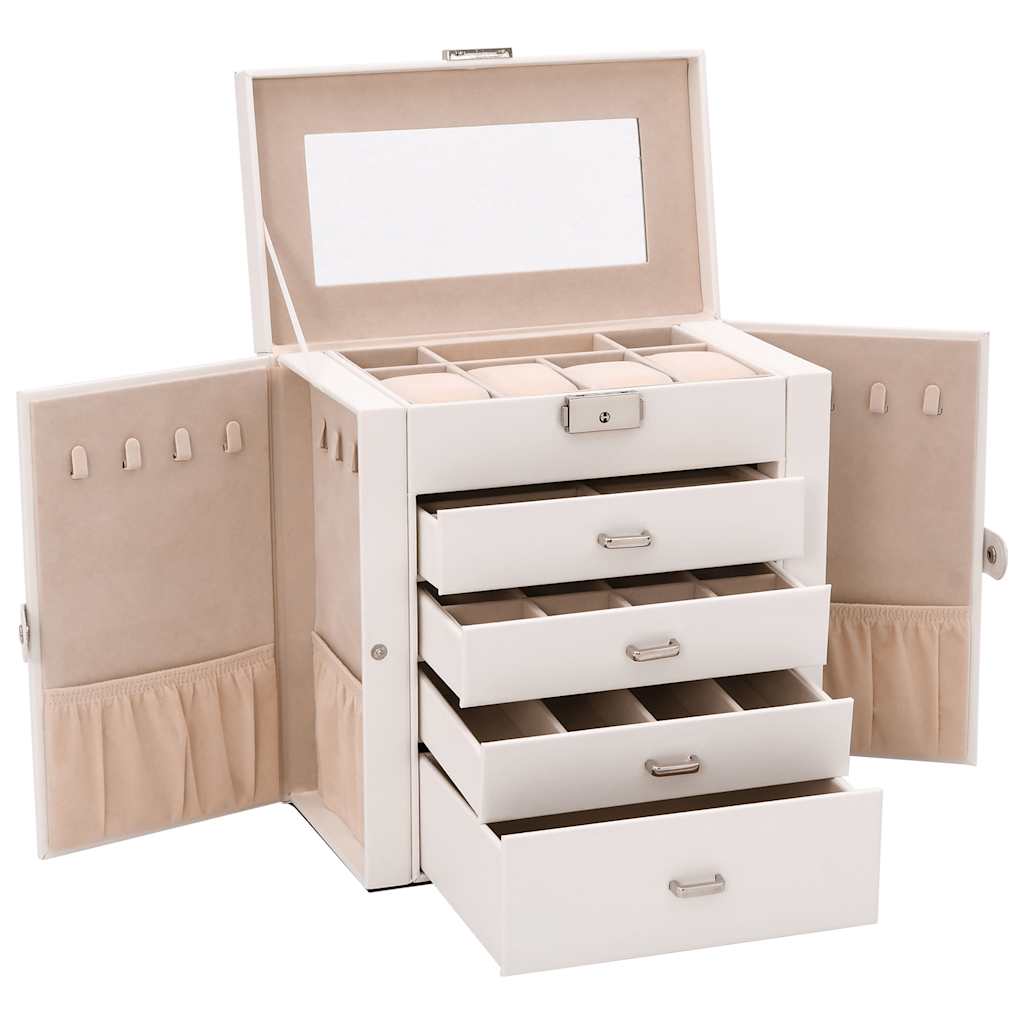 Schmuckkästchen 5-Schichten mit Spiegel Abschließbar Weiß
