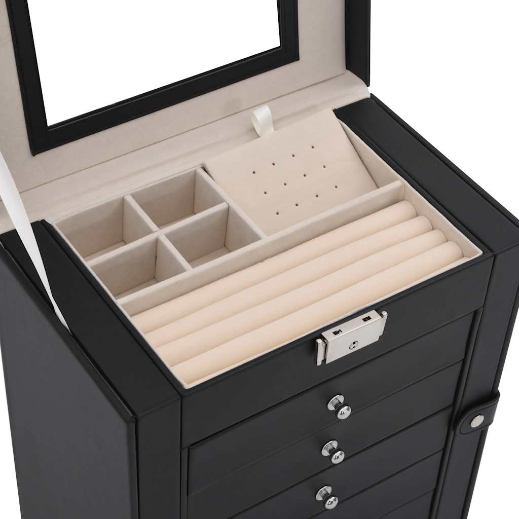 Schmuckkästchen 6-Schichten mit Spiegel Abschließbar Schwarz