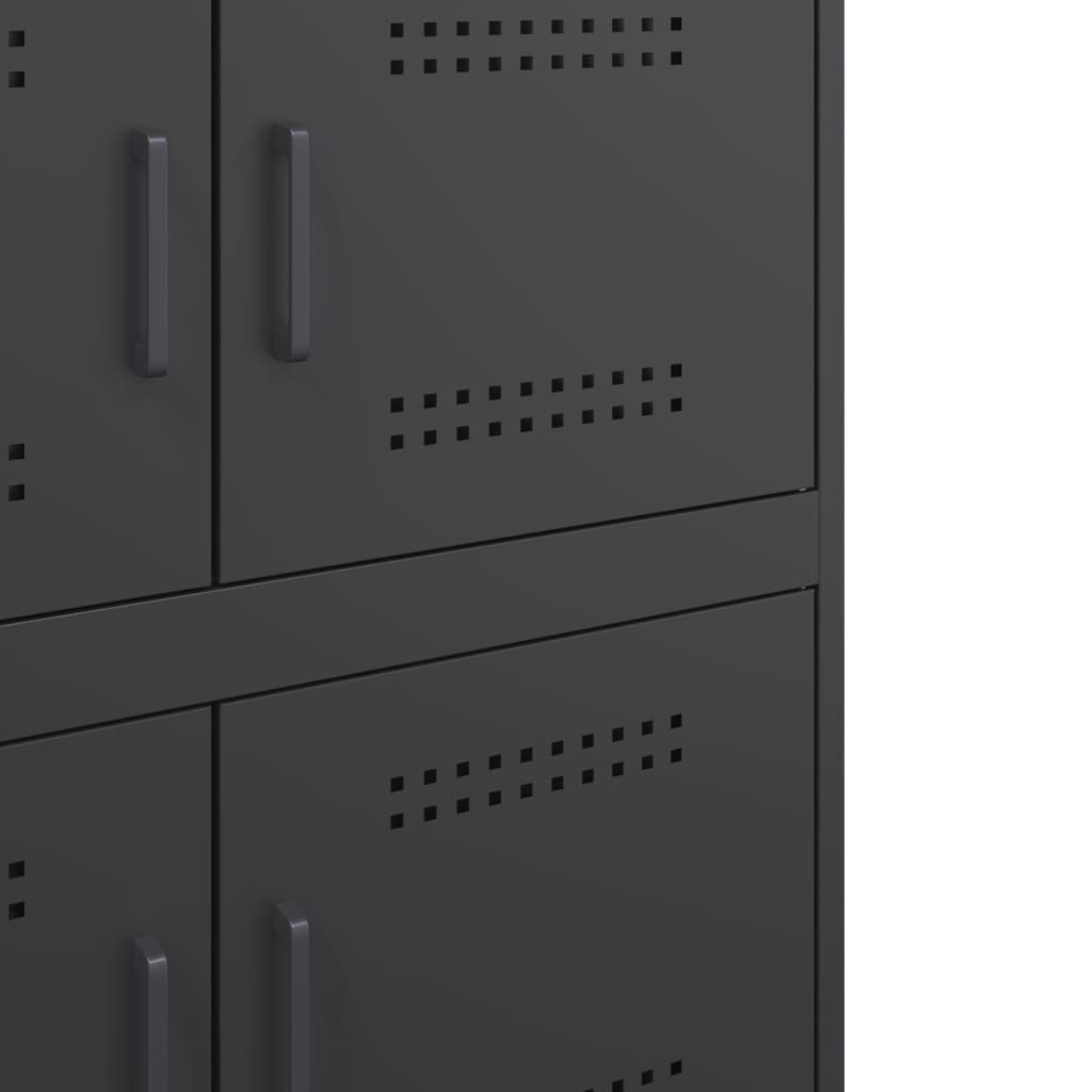 Dieses robuste Sideboard im Industrie-Stil ist eine zeitlose Ergänzung zu deinem Schlafzimmer oder Wohnzimmer. Robustes und stabiles Gestell: Stahl ist stark, stabil und langlebig, was ihn zur idealen Wahl für eine Vielzahl von Anwendungen macht, von der Möbelherstellung bis hin zum Bauwesen.Reichlich Stauraum: Mit seinen 4 Fächern bietet das Sideboard reichlich Stauraum, um verschiedene Alltagssachen ordentlich und in Reichweite aufzubewahren. Einfache Reinigung: Der Schrank lässt sich leicht mit einem feuchten Tuch reinigen und erfordert wenig Pflege.Praktische Tür: Sorge für Ordnung in deinem Wohnzimmer, indem du wichtige Sachen in diesem Schrank hinter den Türen versteckst.Achtung:Um ein Umkippen zu vermeiden, sollte dieses Produkt mit der mitgelieferten Wandhalterung gesichert werden.