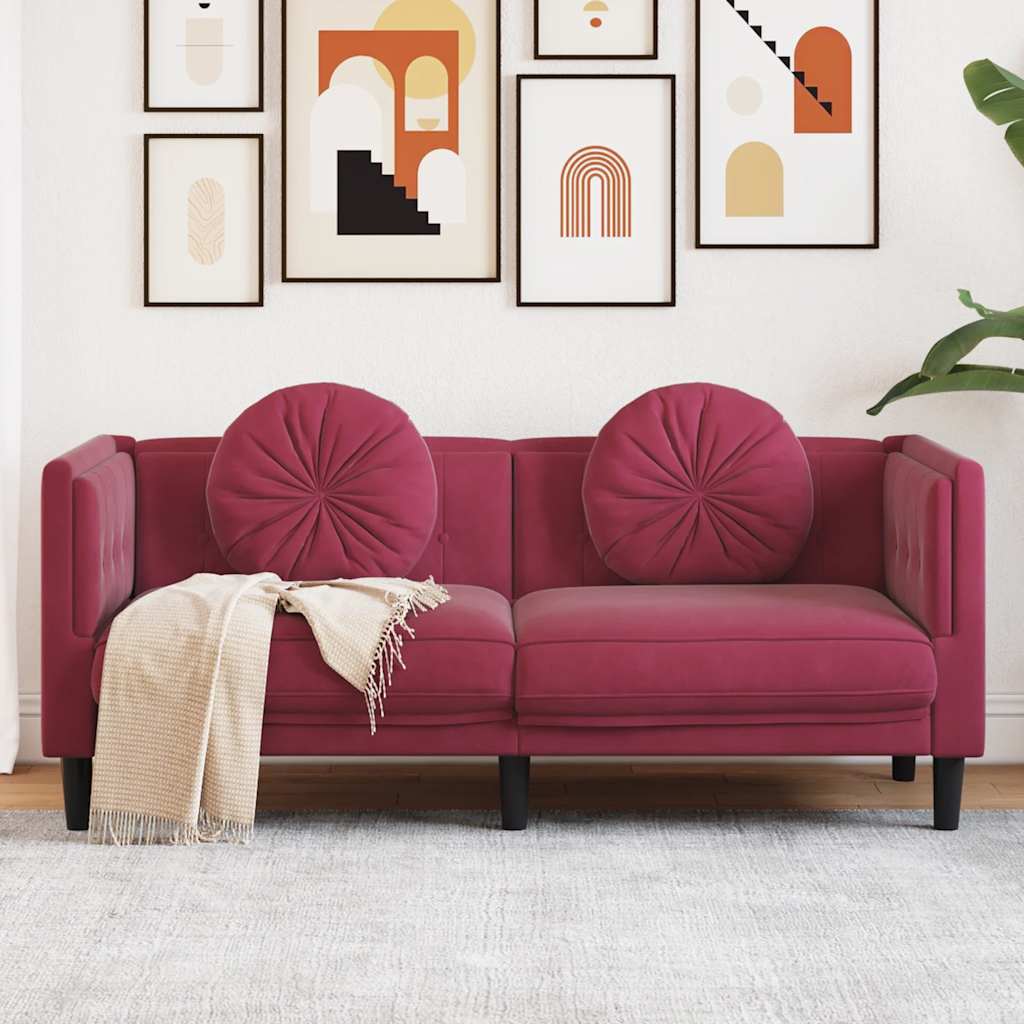 Sofa mit Kissen 2-Sitzer Weinrot Samt