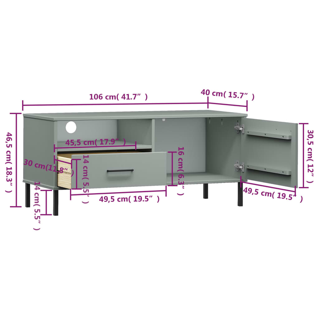 TV-Schrank OSLO mit Metallbeinen Grau Massivholz Kiefer