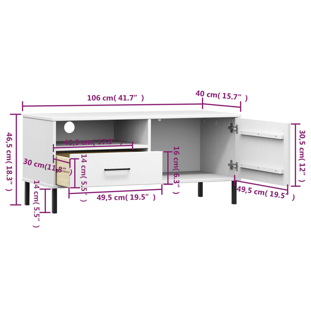 TV-Schrank OSLO mit Metallbeinen Weiß Massivholz Kiefer