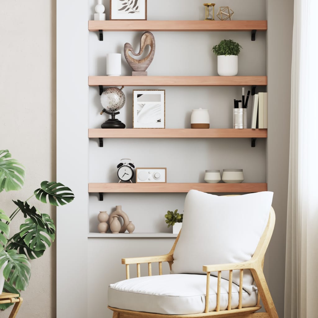 Brauchst du mehr Stauraum, hast aber keinen Platz mehr am Boden? Dieses Wandregal im rustikalen Stil bietet die perfekte Lösung. Stabile Konstruktion: Das Wandregal besteht aus massivem Eichenholz, einem wunderschönen Naturmaterial. Eichenholz weist eine mittelbraune Farbe und eine dichte Maserung auf, was zu seiner einzigartigen Optik beiträgt.Vielseitig einsetzbar: Dieses Wandboard lässt sich nicht nur als Wandregal verwenden, sondern auch mit verschiedenen Gestellen kombinieren, um als Badezimmerablage, Schrankablage, Schreibtischablage, Tischablage usw. zu dienen.Behandelte Oberfläche: Das Holzregal ist lackiert, so dass es sofort einsatzbereit ist, denn eine zusätzliche Holzbehandlung ist nicht erforderlich.Handgefertigt mit Naturkante: Dieses Regal ist handgefertigt und besitzt eine Naturkante. Dabei sind Aststellen, Risse, leicht geschwungene Formen und verschiedene Farbtöne Teil des Eichenholzes und machen jedes Regal zu einem Unikat. Die Lieferung erfolgt nach dem Zufallsprinzip, wodurch die Exklusivität und Individualität deines Produkts gewährleistet wird. Gut zu wissen:Als Naturprodukt kann Holz Aststellen und Unebenheiten aufweisen, die wir mit schwarzer Füllung ausfüllen, um ein glattes Aussehen zu gewährleisten.