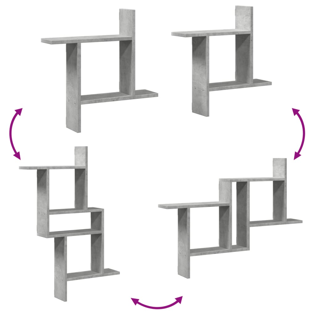Wandregale 2 Stk. Betongrau 50x12x50 cm Holzwerkstoff