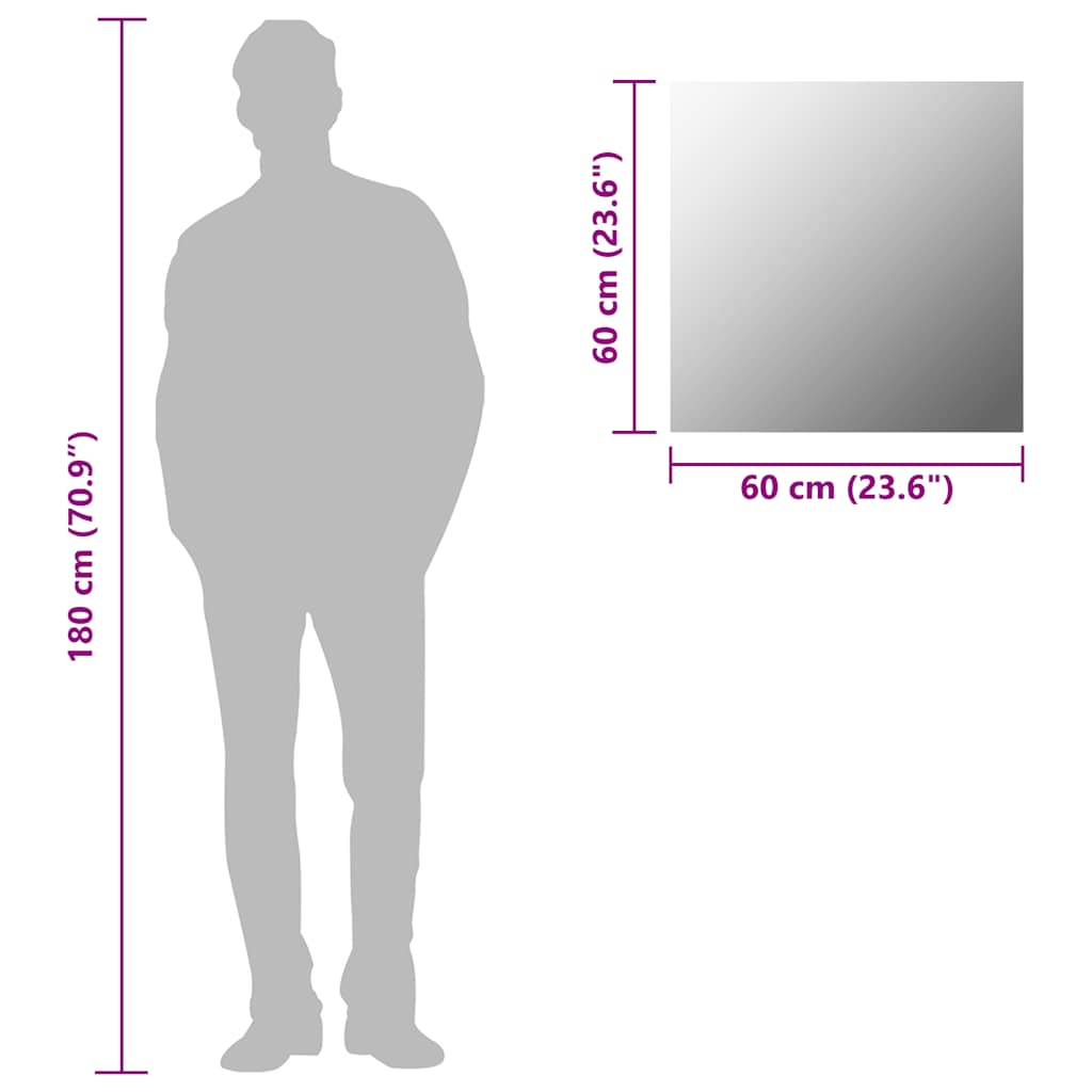 Verleihen Sie Ihrem Schlafzimmer, Wohnzimmer oder Ankleidezimmer mit unserem praktischen Wandspiegel einen Hauch von minimalistischer Ästhetik! Mit diesem Spiegel verziert, wird Ihr Raum optisch großzügiger wirken. Die Spiegelkante ist geschliffen, um ein sauberes Aussehen zu erhalten. Sie können auch mehrere Spiegel kaufen und in einem dekorativen Muster anordnen. Dank des mitgelieferten Zubehörs können die Spiegel einfach montiert werden.